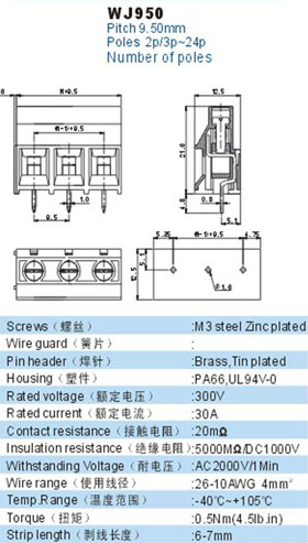 螺钉式PCB接线端子 WJ950
