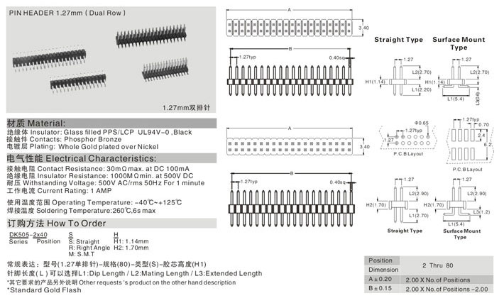 产品型号:PIN HEADER1.27mm(Dual Row)